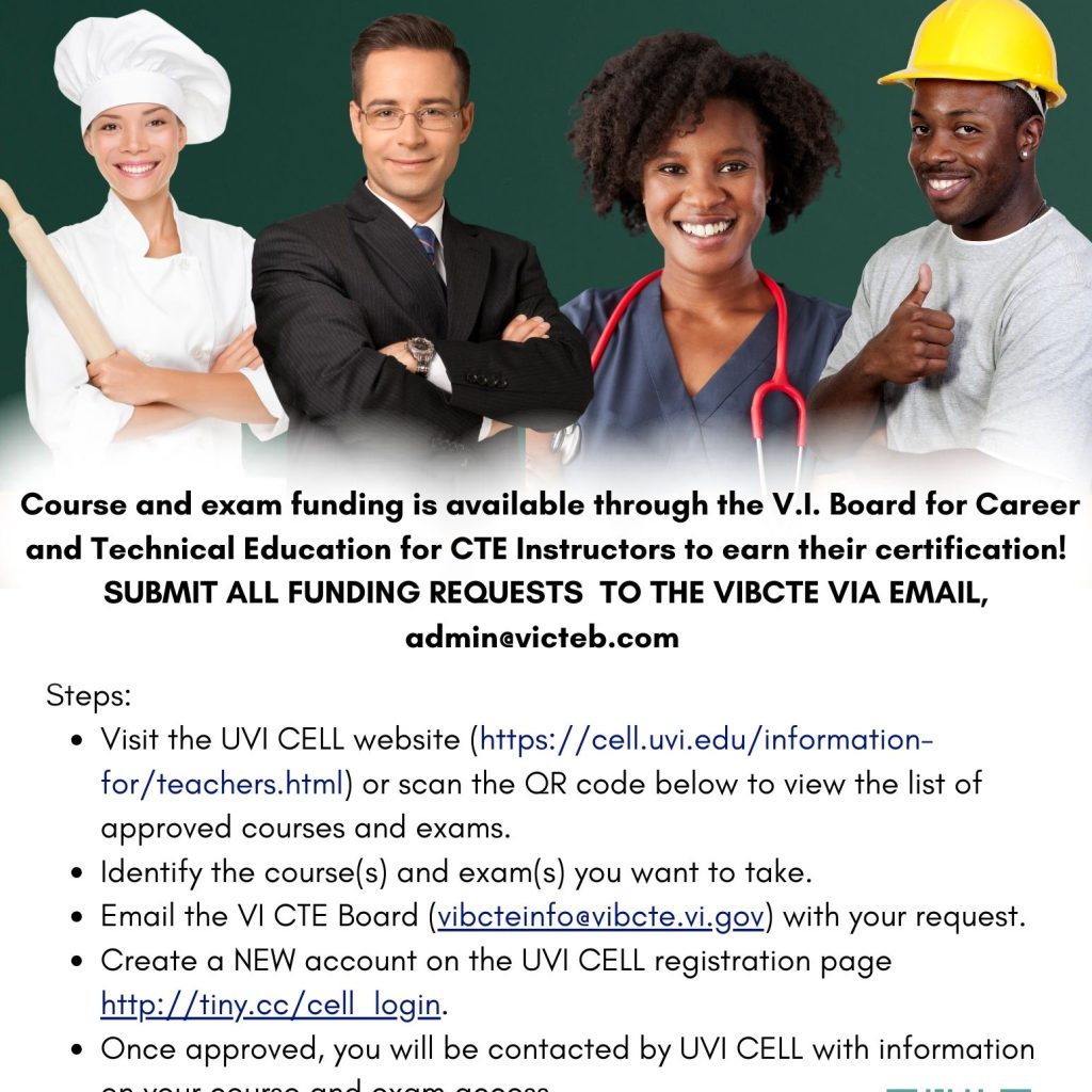 Did you know that funding is available through the V.I. Career and Technical Education Board for CTE Instructors to take courses and exams to meet certification requirements?